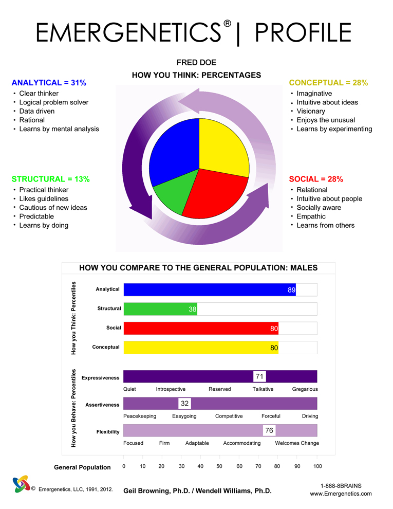 Over the past 20 years, Emergenetics has earned an international reputation as a science-based method that has met The Standards for Educational and Psychological Testing. It is an accurate system that empowers people to connect with their ideal approaches for thinking and action.